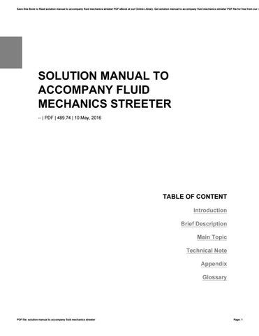 MIM - Download online SOLUTION MANUAL TO ACCOMPANY FLUID MECHANICS STREETER Kobo Library Genesis